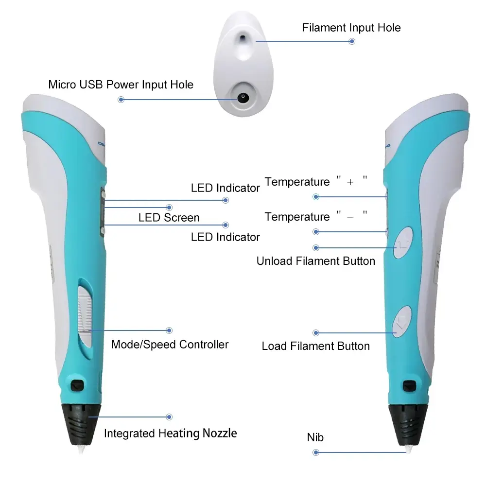 - ❤ Bonus You Will Get– This 3D Printing Pen is compatible with both PLA and ABS. We bonus 3 color random, 1.75mm Diameter, 150 feet PLA filament. Compared to ABS, the PLA filament is more Eco-Friendly and Safer.